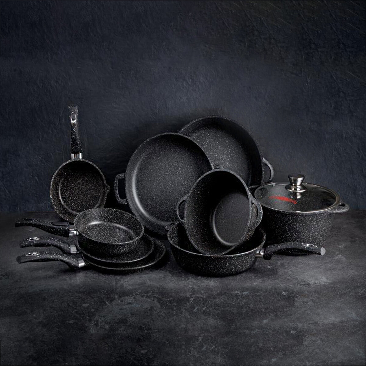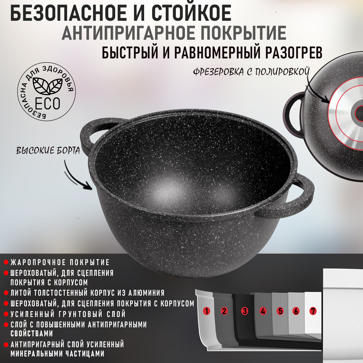 Горница Казан антипригарный из алюминия с крышкой 8 л, Гранит