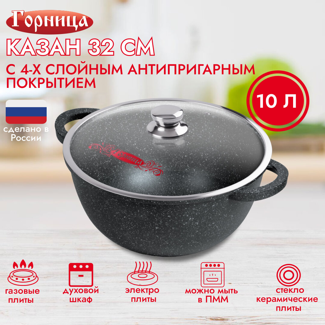 Купить Казан Горница 10 л, с крышкой, серия "Гранит" кн4322аг