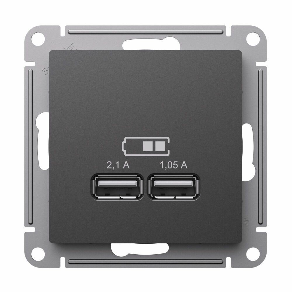Розетка USB A+A (2.1А и 1.05А) двойная для зарядки Schneider Electric AtlasDesign 5В, базальт ATN001433