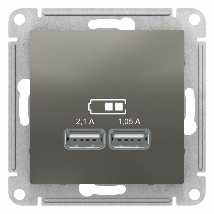 Розетка USB A+A (2.1А и 1.05А) двойная для зарядки Schneider Electric AtlasDesign 5В, базальт ATN001433