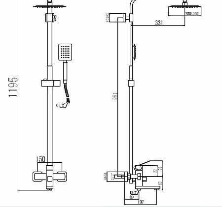 | Форма верхнего душа | квадратная |