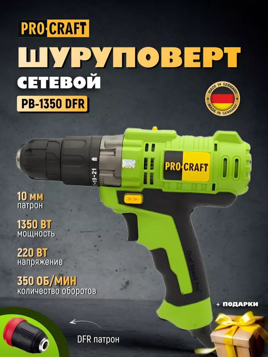Дрель-шуруповерт сетевая Procraft PB1350, 420 Вт интересное:
