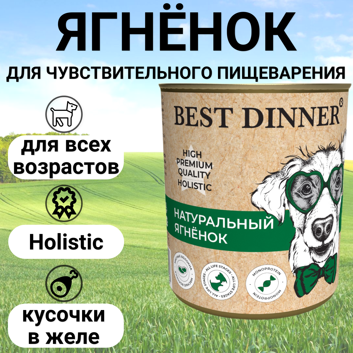 Best Dinner Бест Диннер консервы для собак High Premium, натуральный ягненок, 340 гр. по 6 шт.