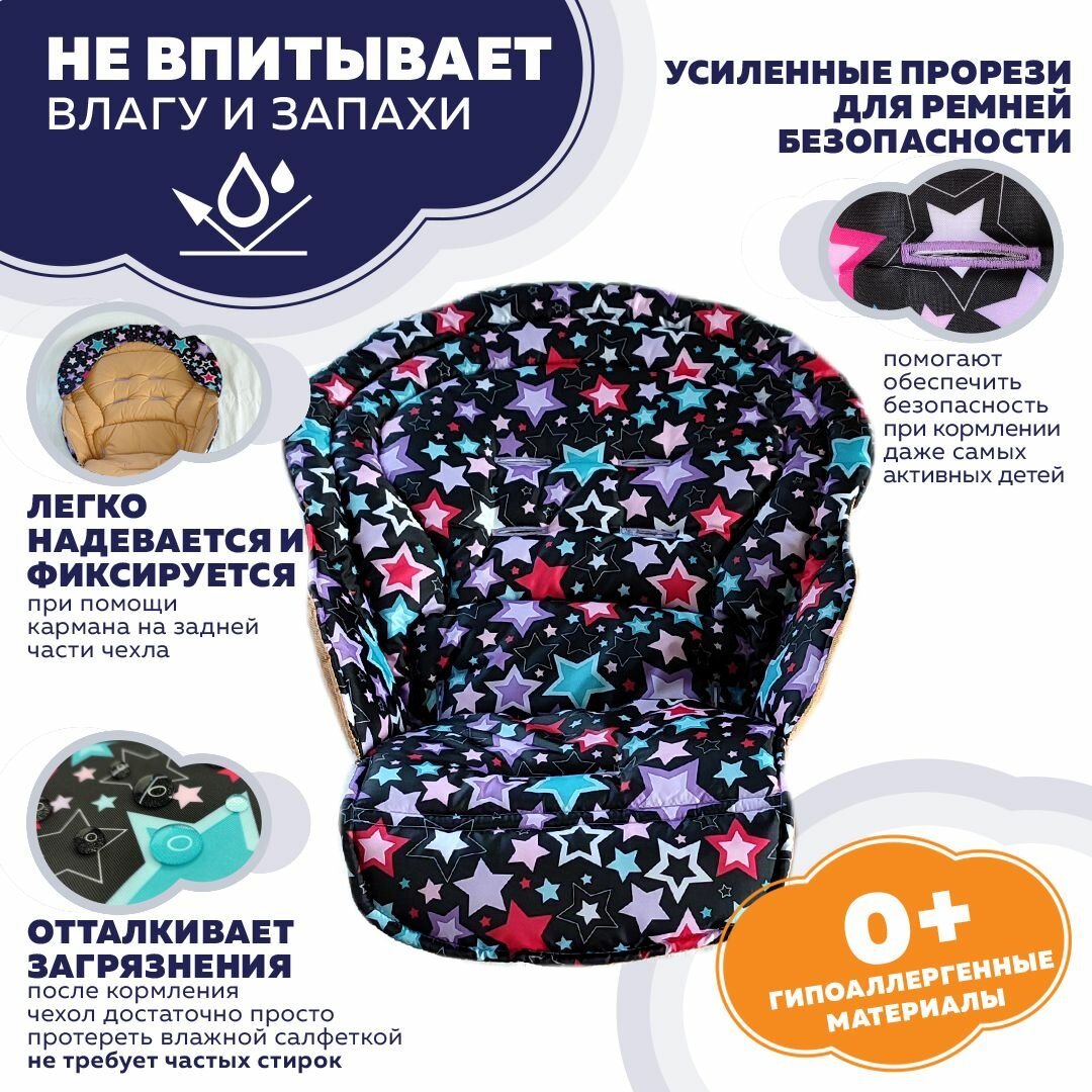 Водостойкий сменный вкладыш Стрекоза к стулу для кормления бренда Cam Campione. Звёздочки