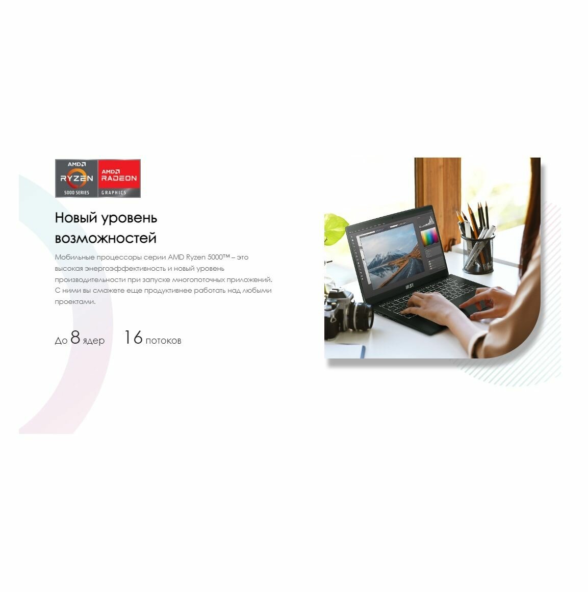 Ноутбук MSI Modern 14 C5M-010XRU 14" 1920x1080 AMD Ryzen 5-5625U SSD 512 Gb 16Gb Bluetooth 5.0 WiFi (802.11 b/g/n/ac/ax) AMD Radeon Graphics черн