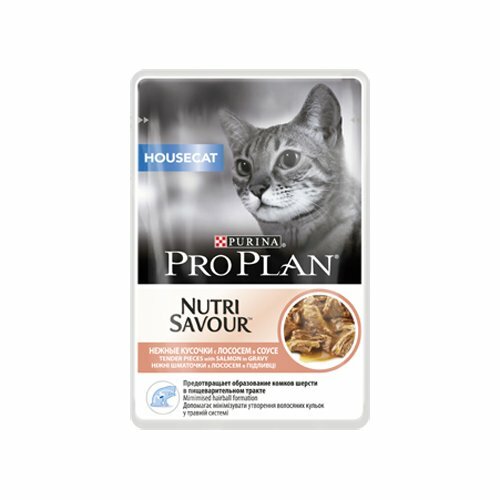 Корм для кошек PRO PLAN Housecat для домашних, с лососем в соусе пауч 85г (упаковка - 26 шт)