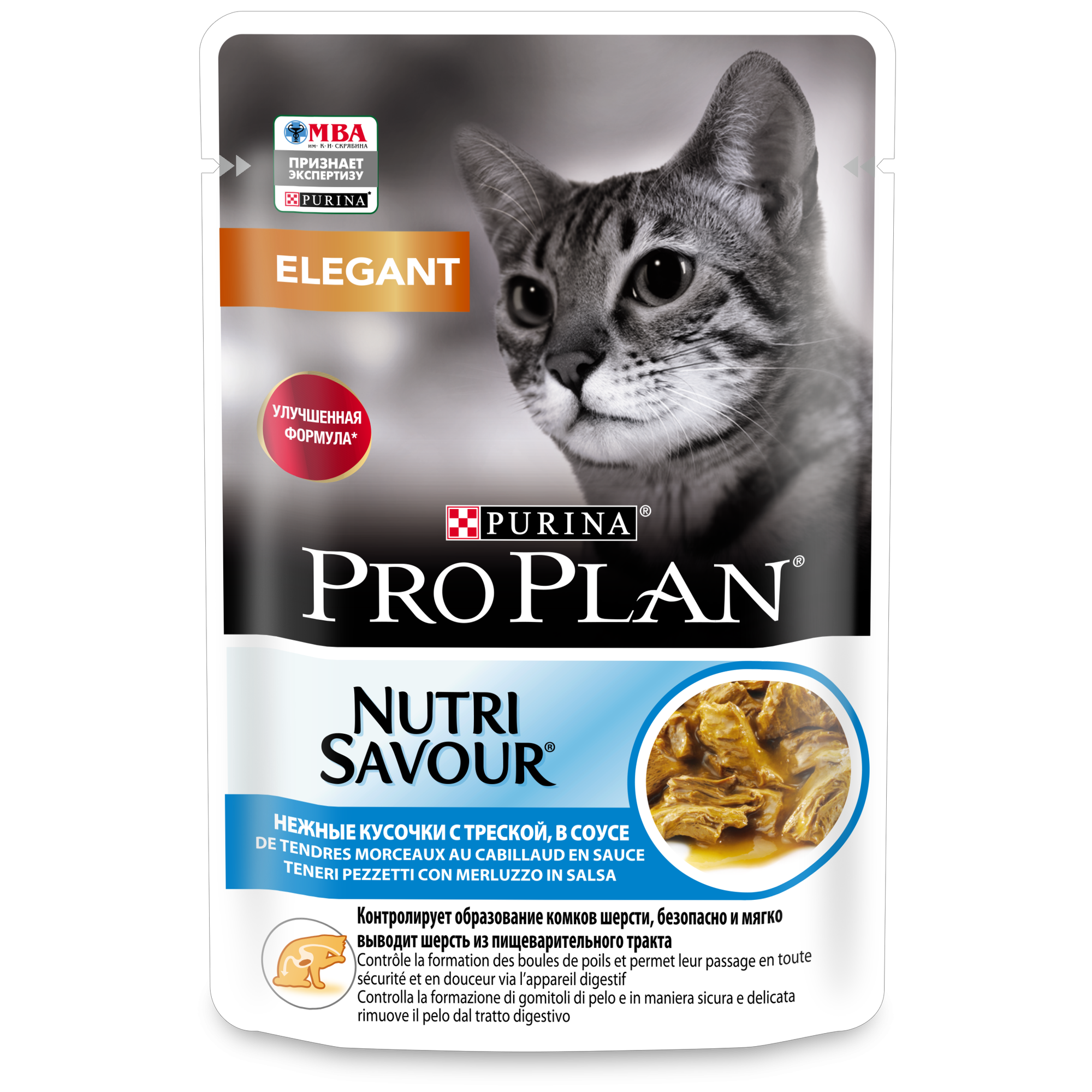 Купить Pro Plan Nutri Savour Elegant Кусочки с треской в соусе для кошек с чувствительной кожей 26шт.*85 гр