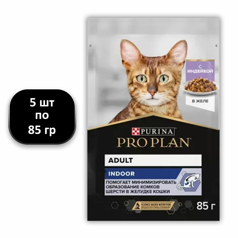 Купить PRO PLAN INDOOR для взрослых кошек, живущих дома, с индейкой в желе пауч 85 гр 85 гр х 5 шт