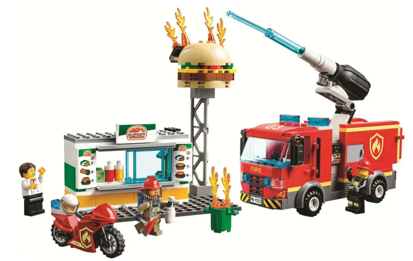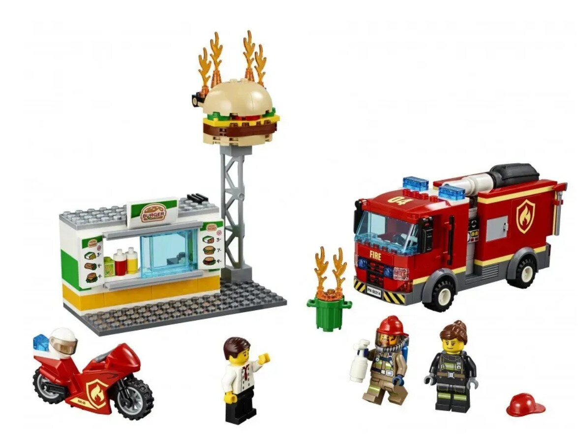 СохранитьКонструктор Cities Сити "Пожар в бургер-кафе" 11213, 345 деталей интересное:
