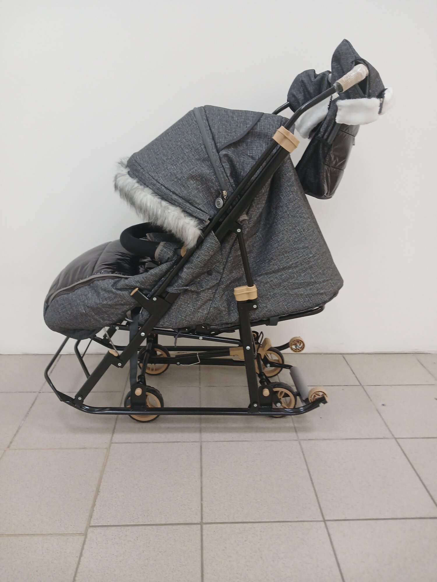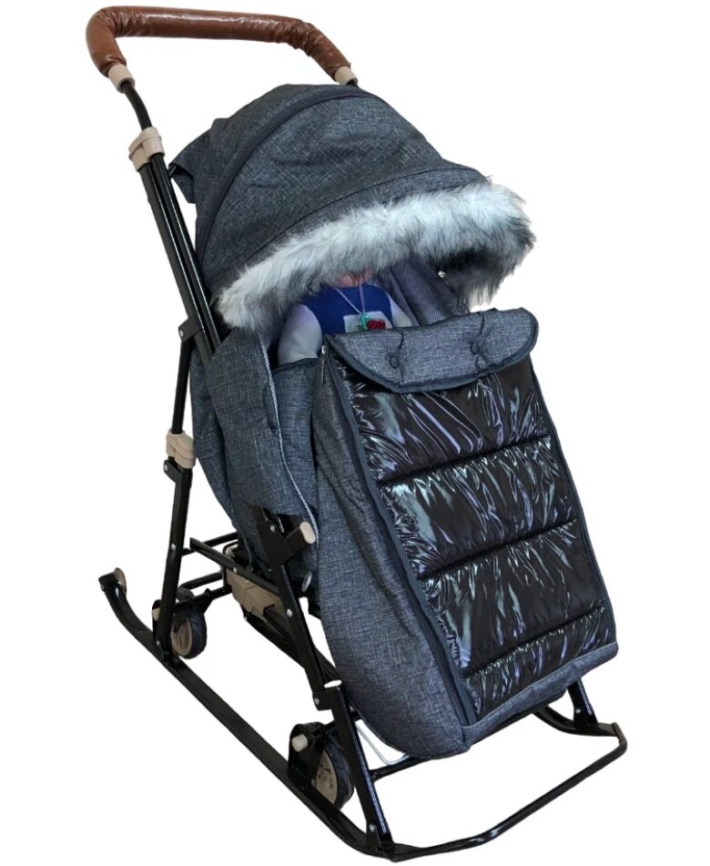 Купить Санки-коляска Galaxy Glory Gloss Лён крупный черный