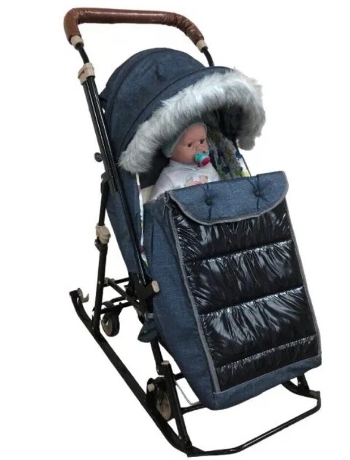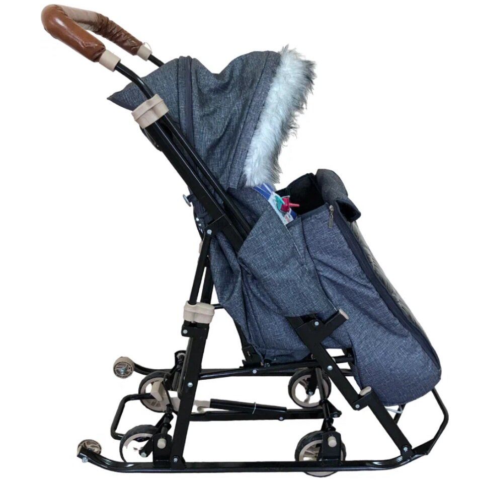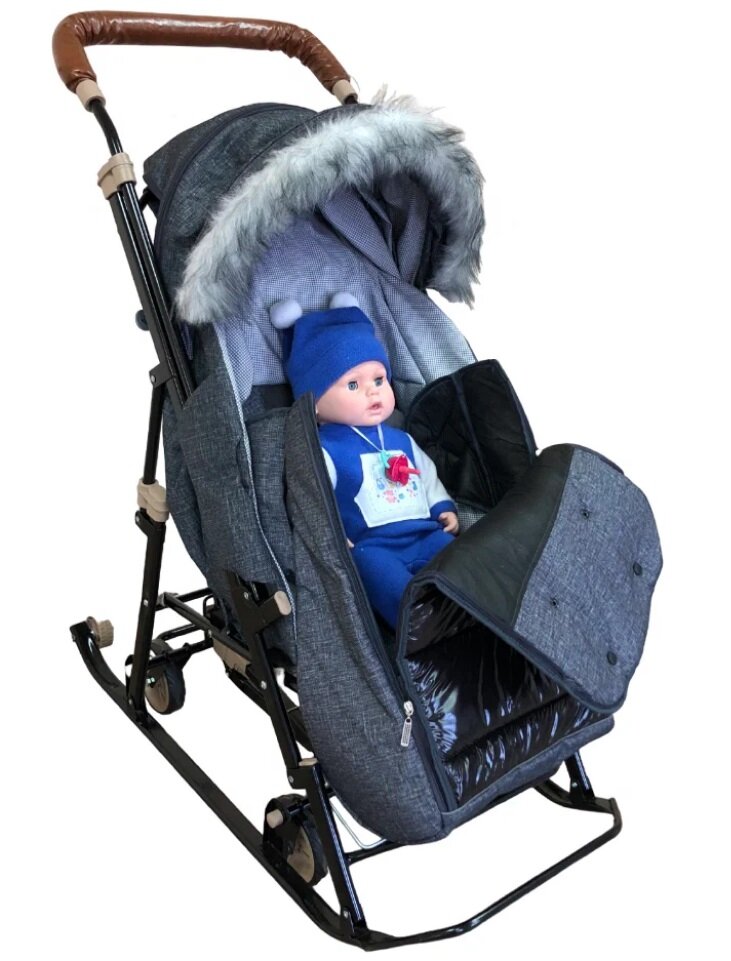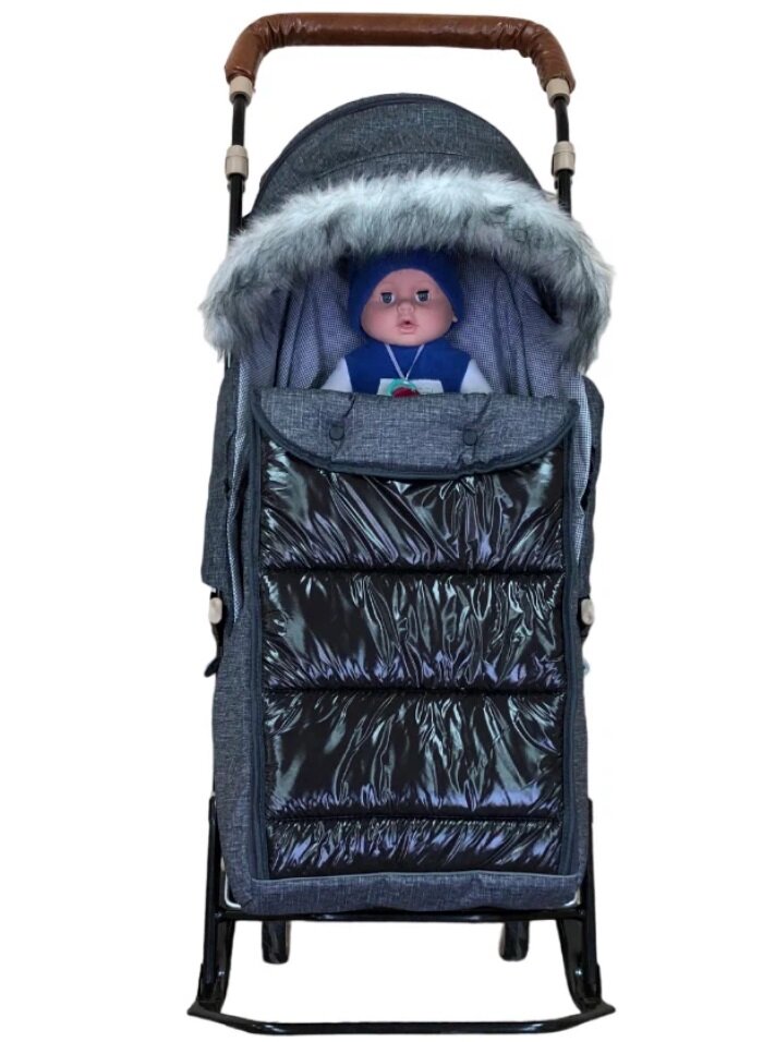 Санки-коляска Galaxy Glory Gloss Лён крупный черный интересное: