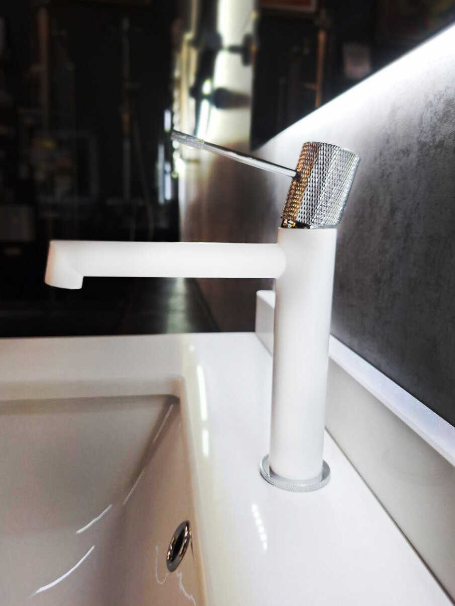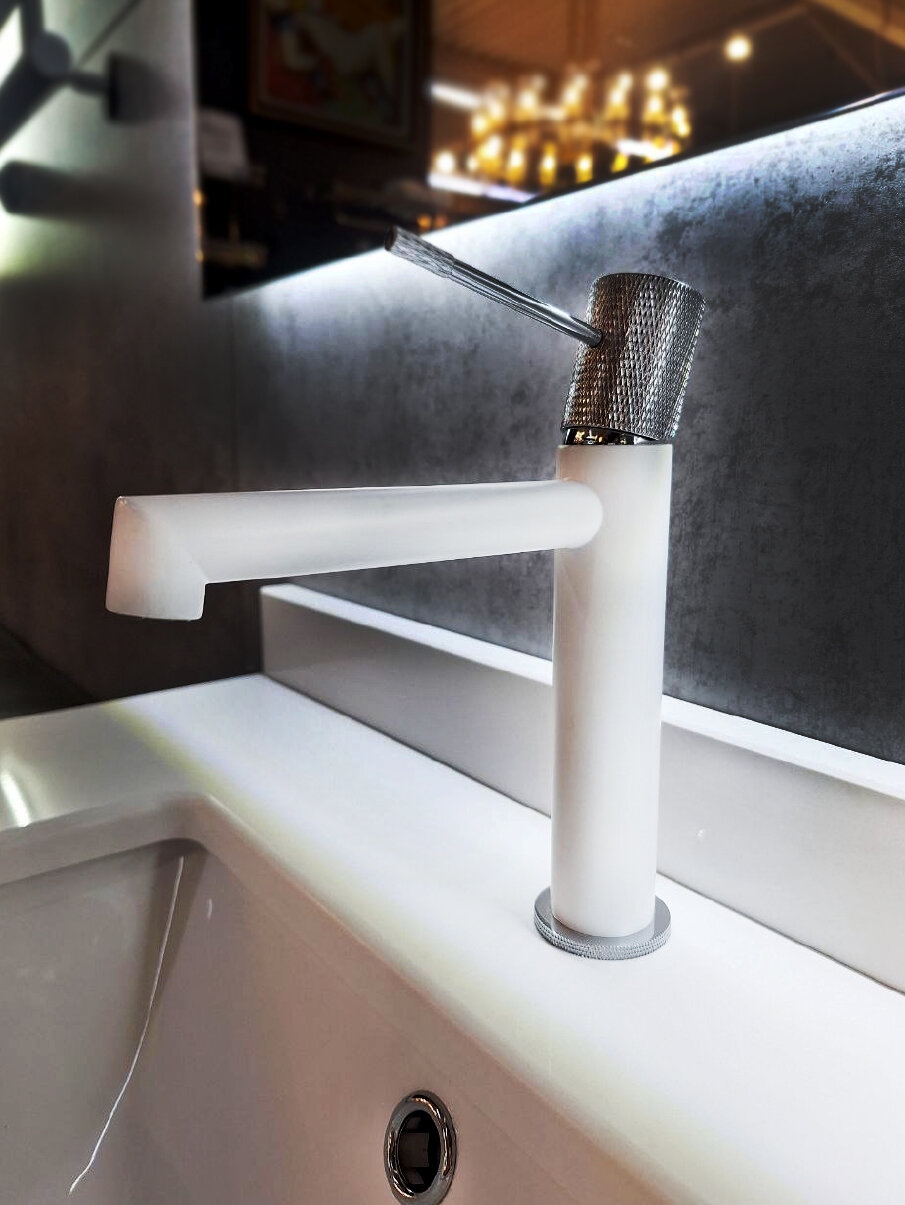AltroBagno Смеситель для раковины в ванную, белый матовый / хром