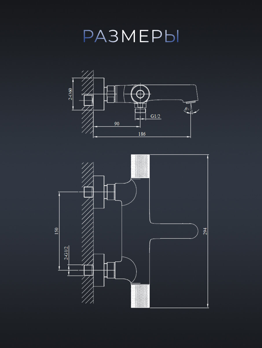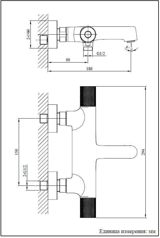 | Комплектация | термостатический смеситель настенного монтажа, эксцентрики, чаши декоративные. |