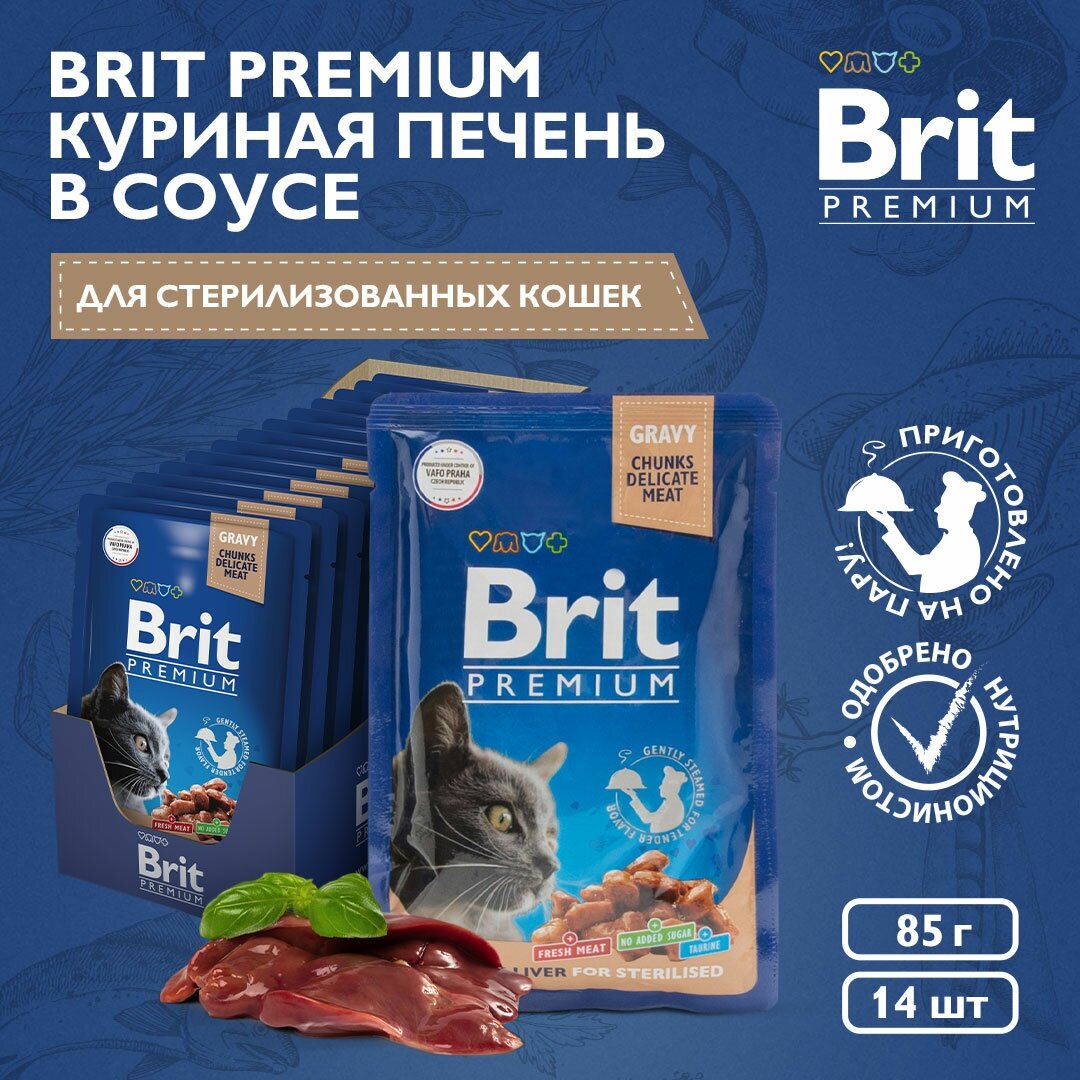 СохранитьВлажный корм для взрослых стерлизованных кошек Brit Premium Куриная печень в соусе, 14 шт х 85 гр интересное: