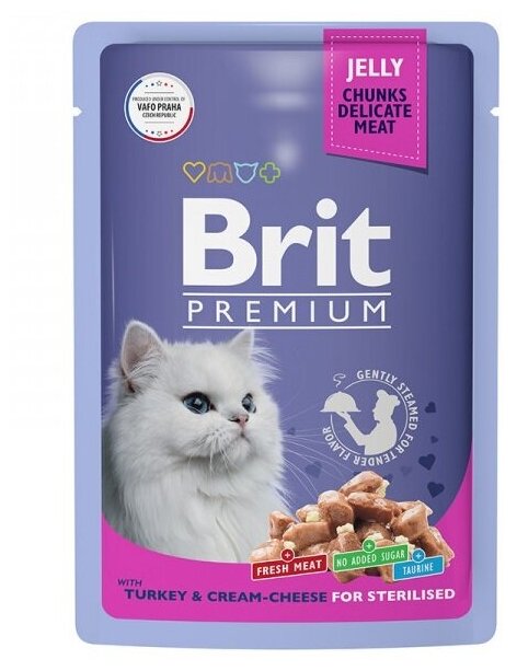 BRIT PREMIUM, Влажный корм для взрослых стерилизованных кошек, Индейка с сыром в желе, 85г x 14шт