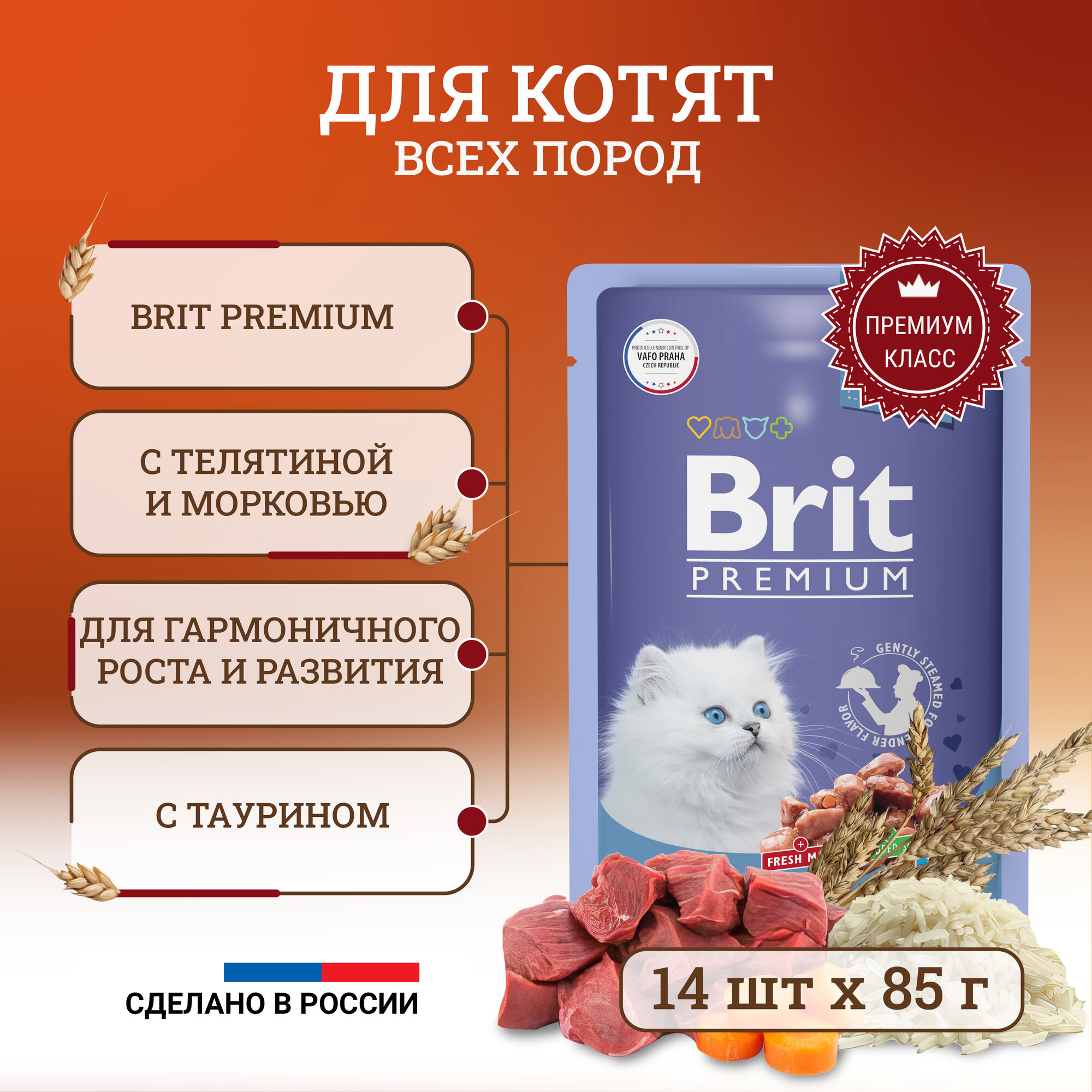 Brit Premium пауч для котят (кусочки в желе) Телятина с морковью, 85 г. упаковка 14 шт