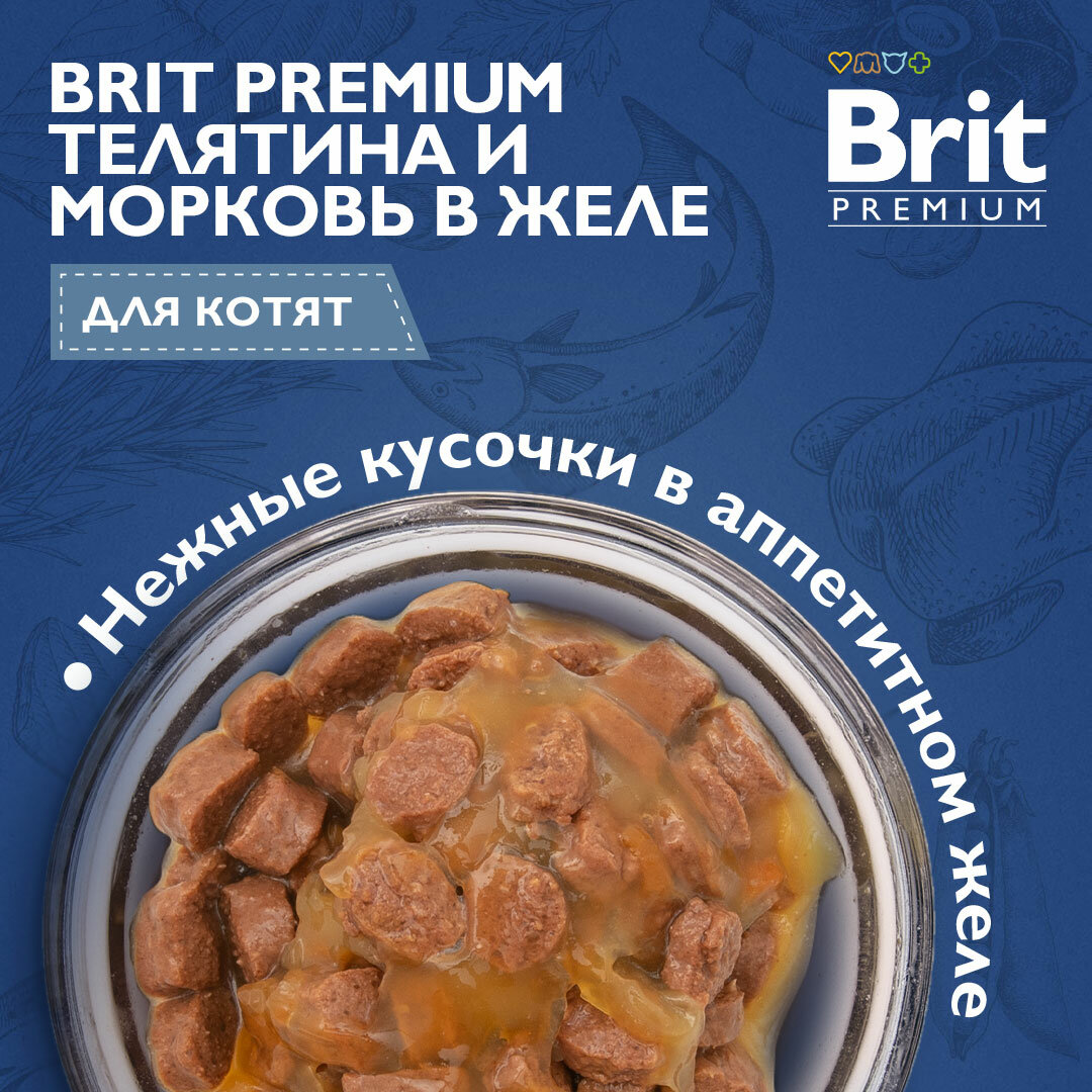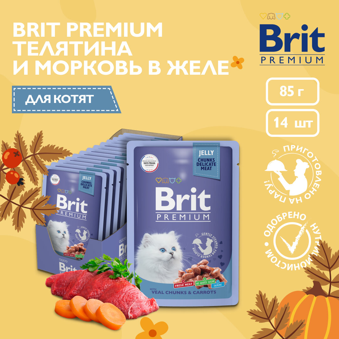 Влажный корм для котят, Телятина и морковь в желе, 85г x 14шт BRIT PREMIUM