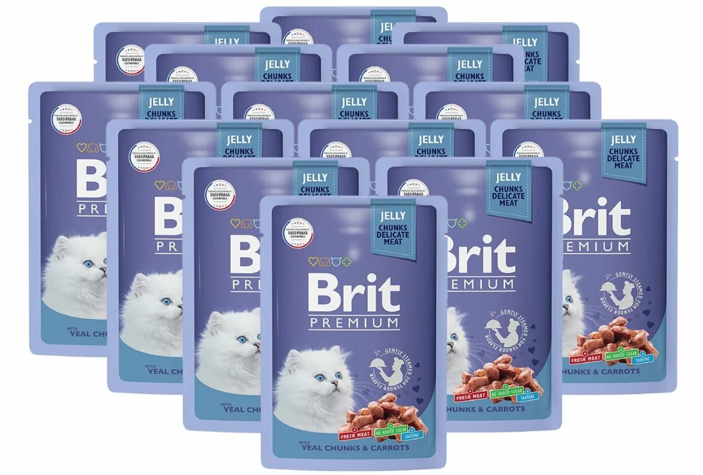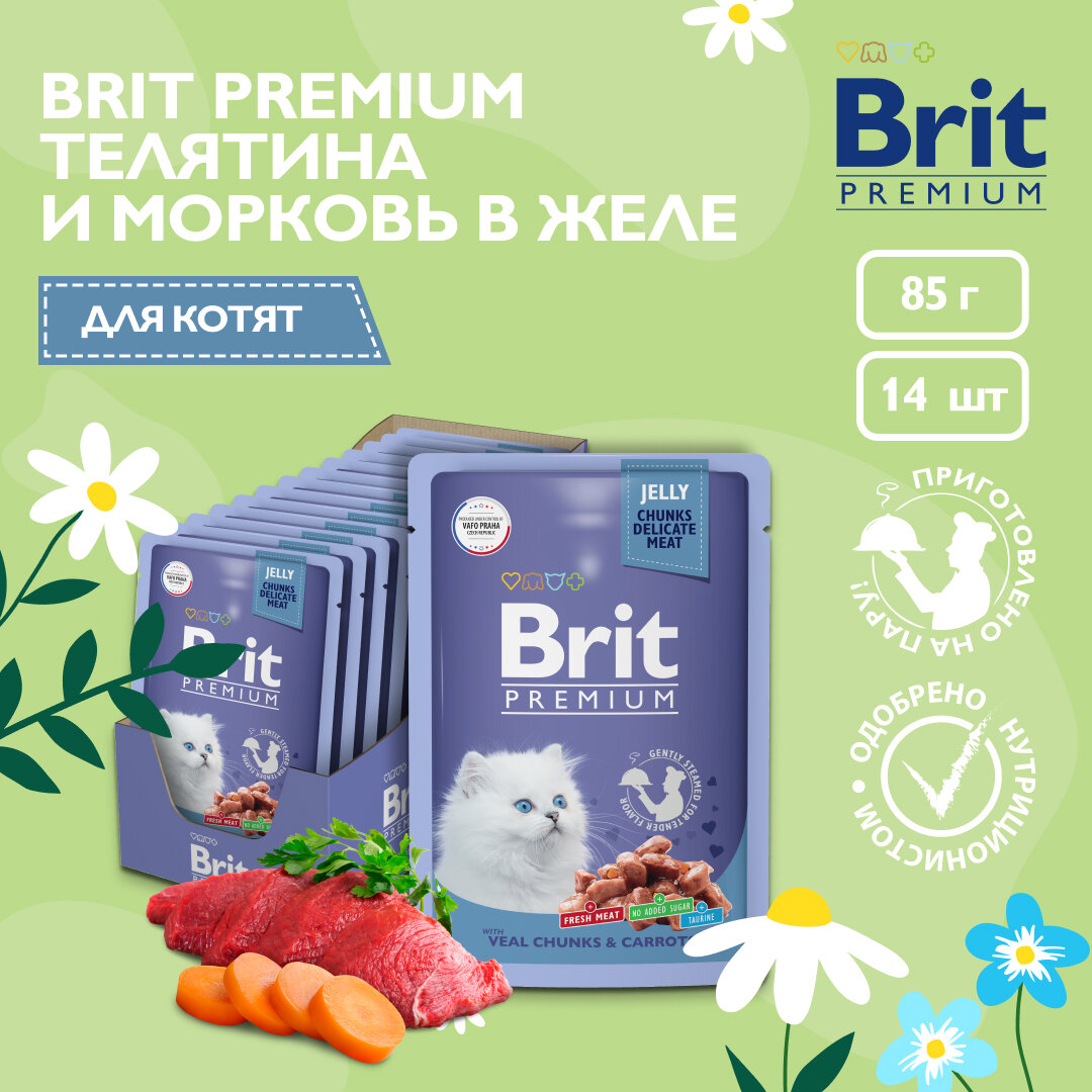 Купить Brit Premium паучи для котят с телятиной и морковью кусочки в желе - 85 г х 14 шт