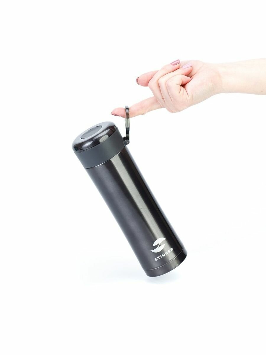 Термокружка Stinger, 0,42 л, сталь/пластик, чёрный матовый, с ситечком