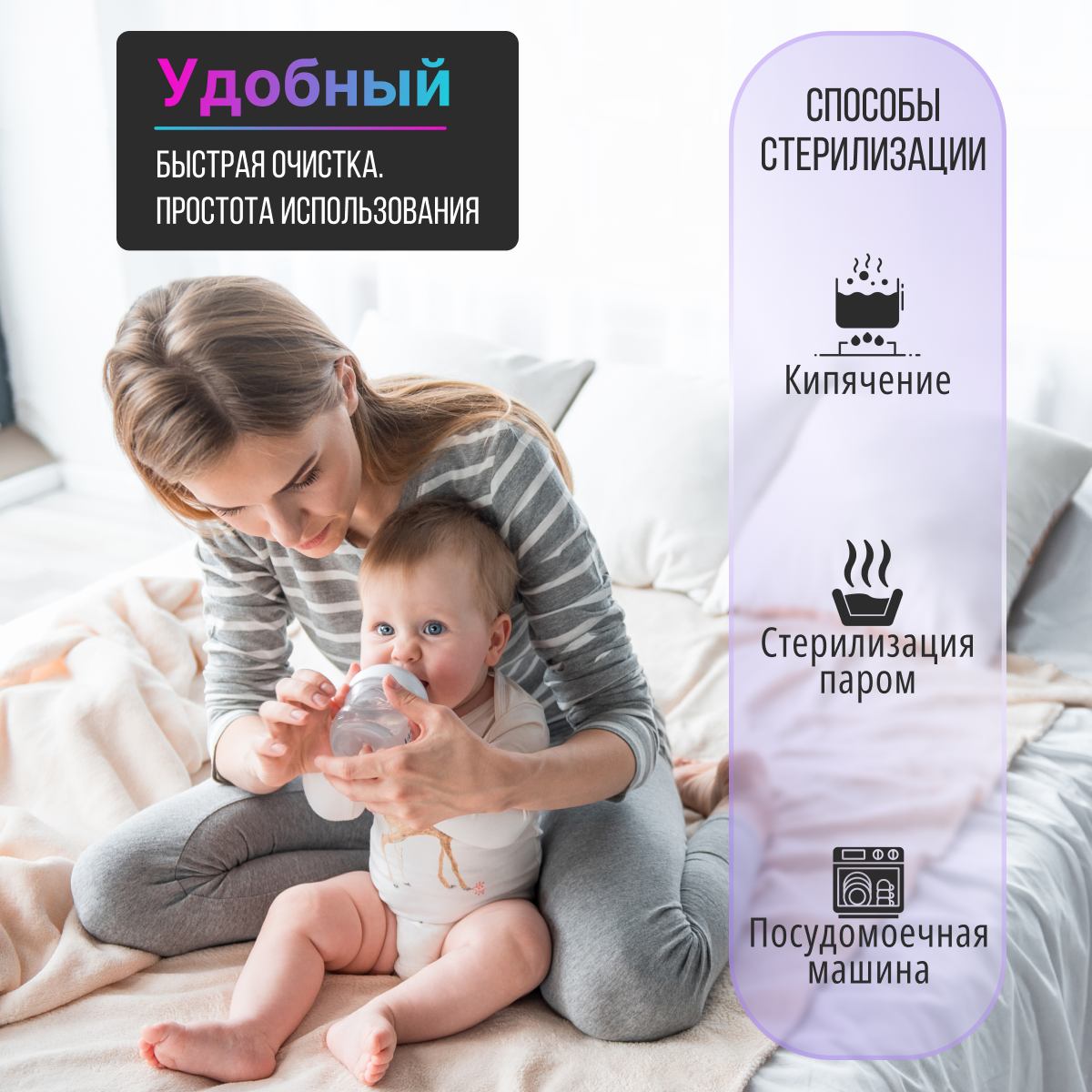 | Плюсы: | Цена, переходники для бутылочек разных фирм, двухфазный режим, качественный пластик. |