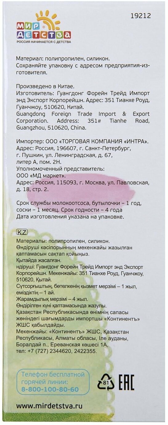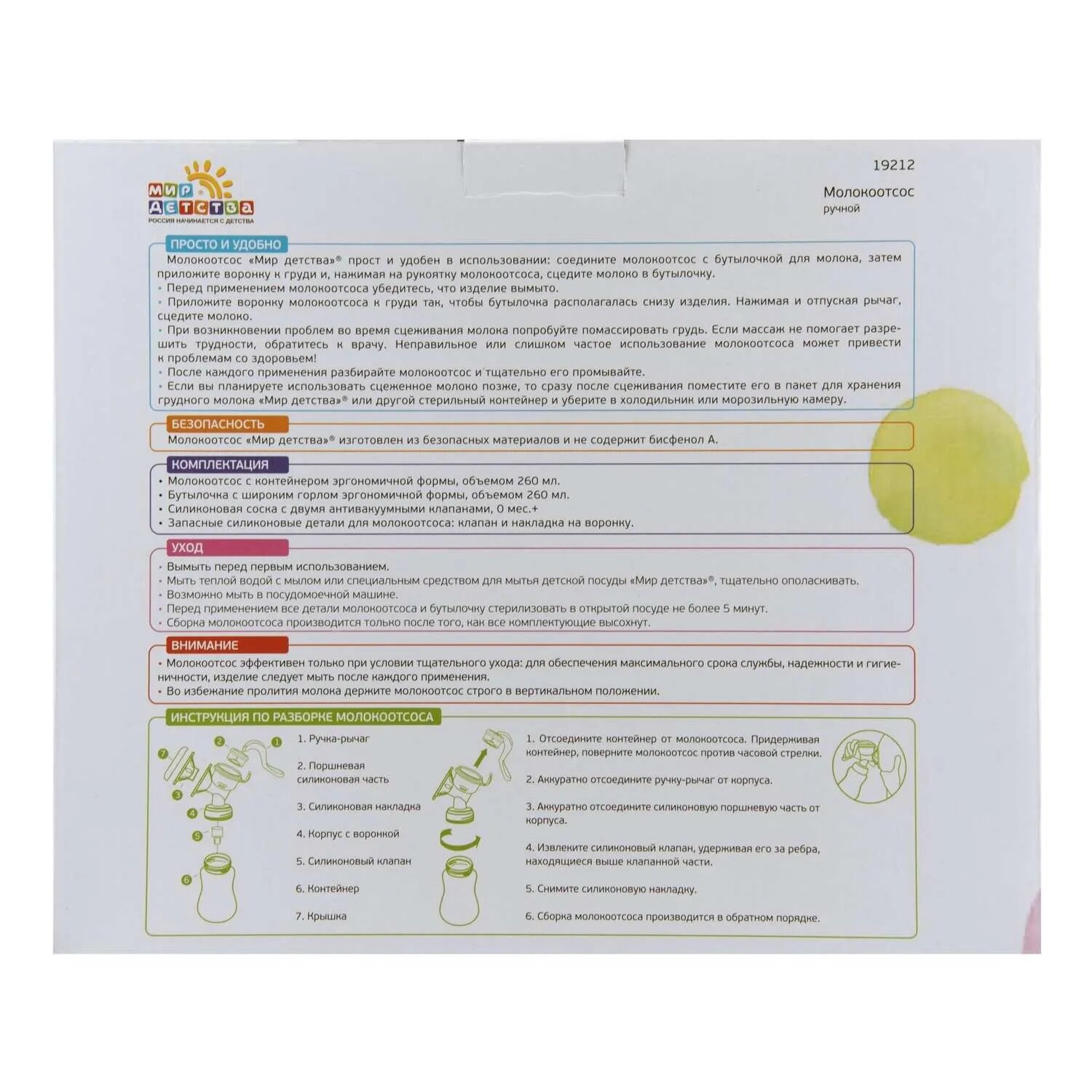 Мир Детства молокоотсос Арт.19212 с бутылочкой с соской силик 0+ мес интересное: