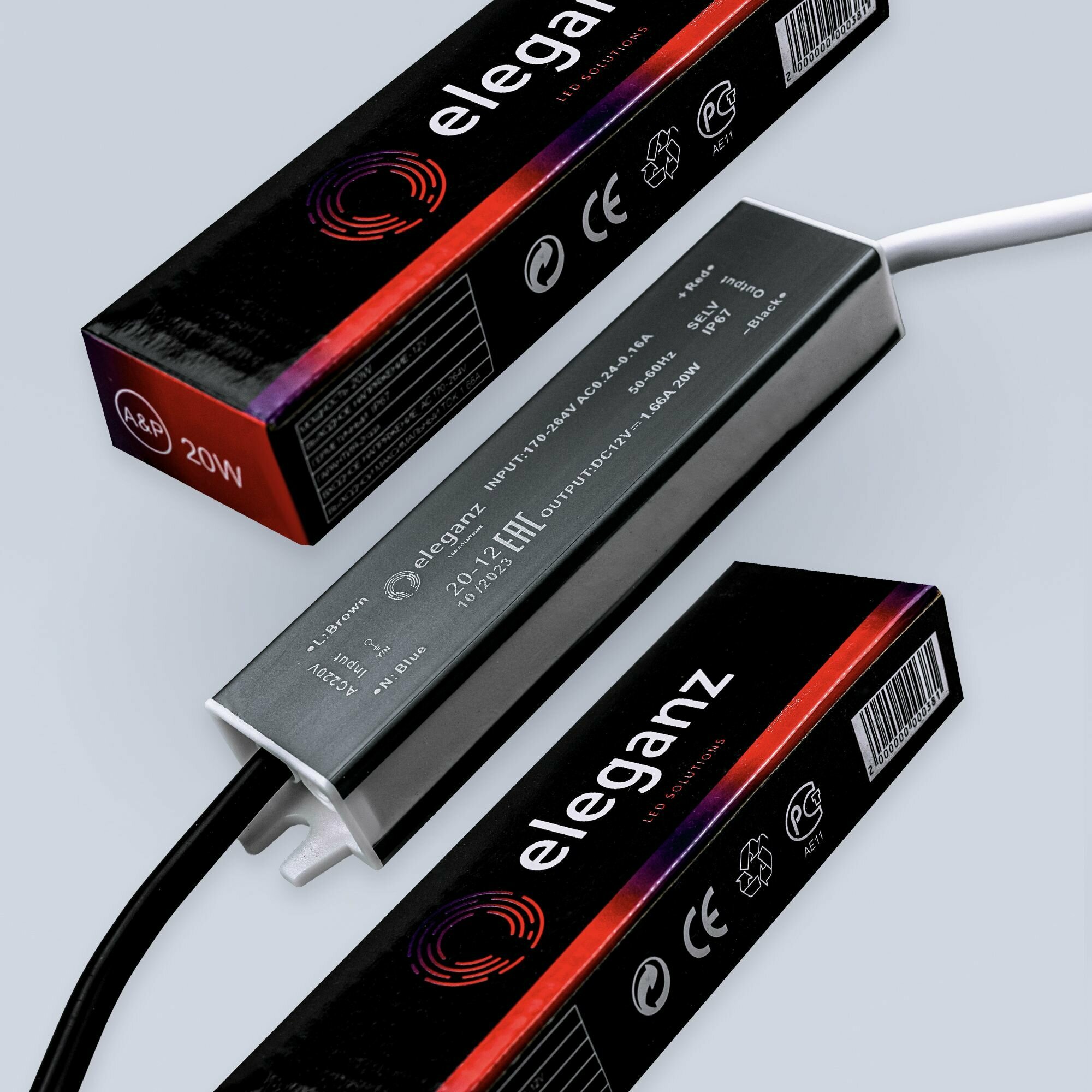 Купить Герметичный блок питания/трансформатор (металлический корпус) "Eleganz 20Вт" для светодиодной ленты 12В IP67