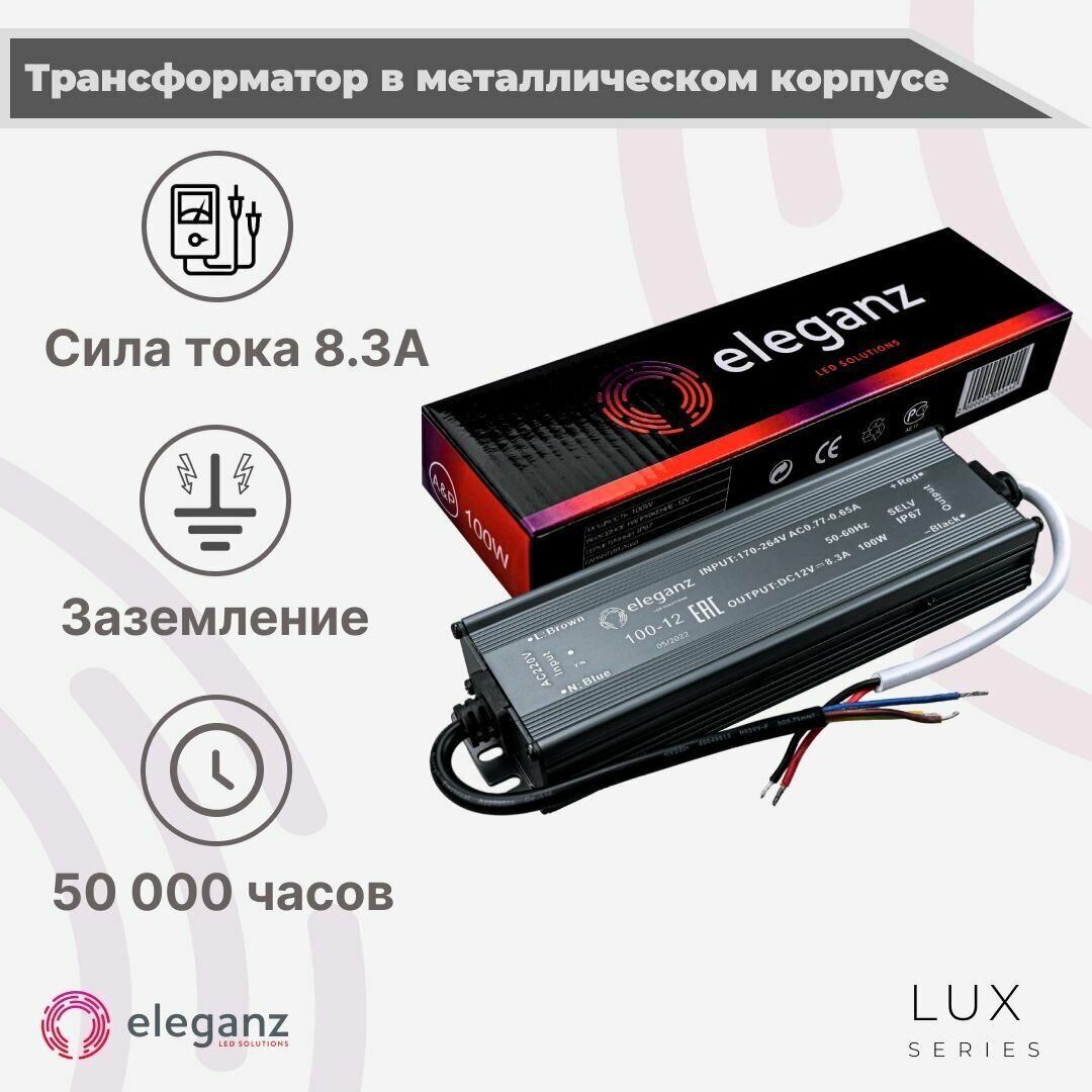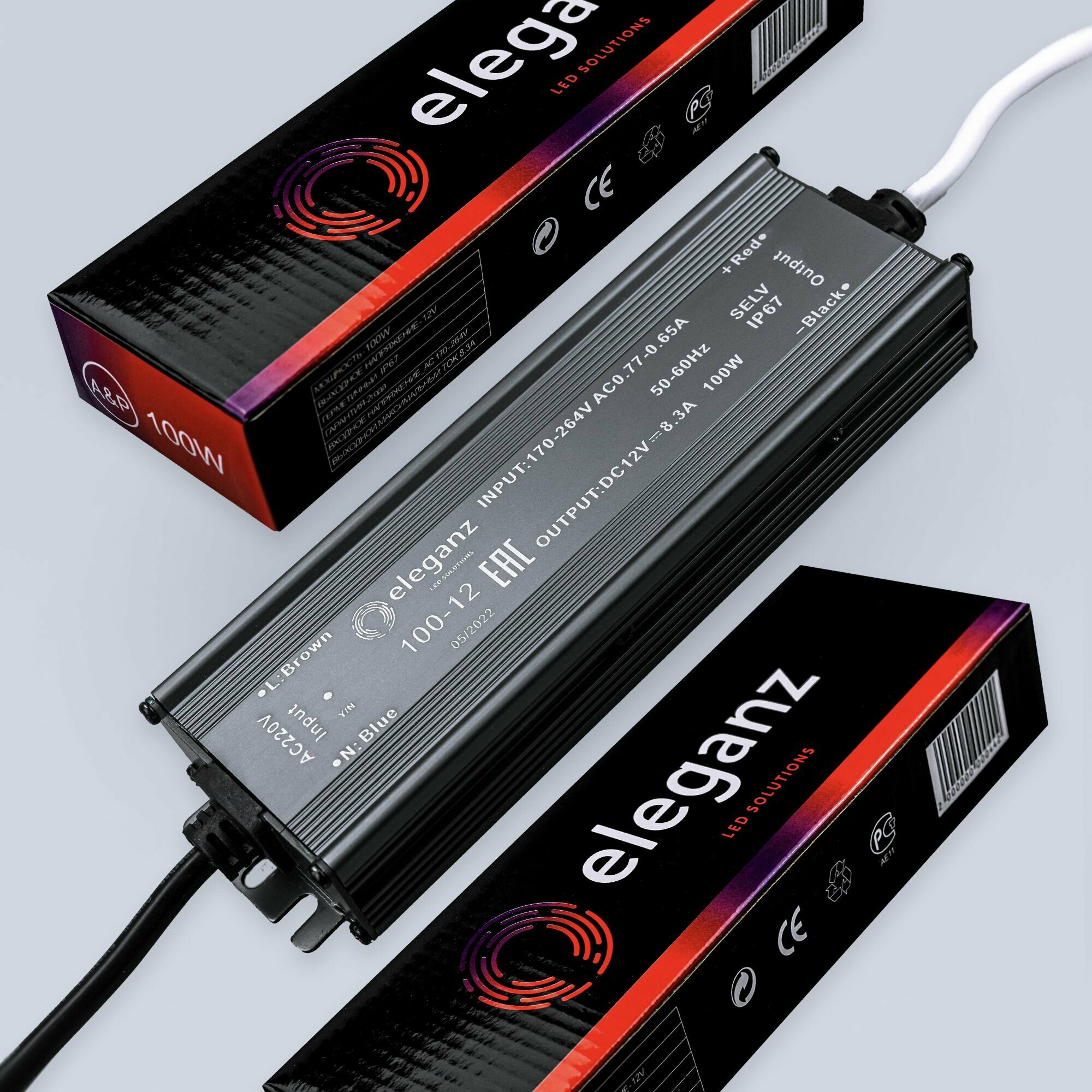 Купить Герметичный блок питания/трансформатор (металлический корпус) "Eleganz 100Вт" для светодиодной ленты 12В IP67