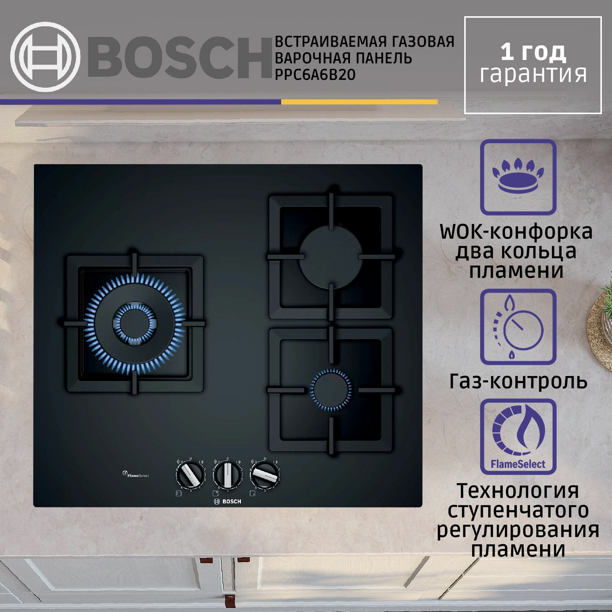 Ниже Вы можете прочитать отзывы на Газовая варочная панель Bosch Serie 6 PPC6A6B20, ознакомится с подробными характеристиками, посмотреть интересные обзоры и фотографии на Газовая варочная панель Bosch Serie 6 PPC6A6B20.