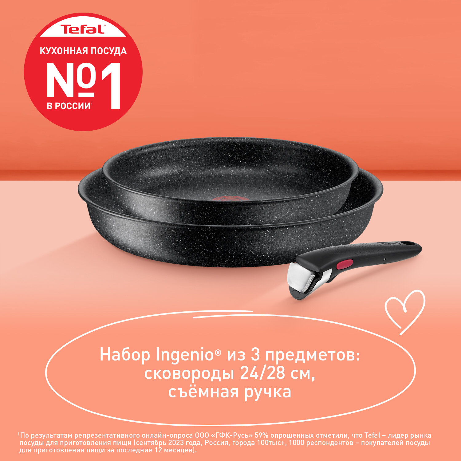 Купить Набор посуды со съемной ручкой Tefal Ingenio Black Stone L3999032, 28 см, 24 см, с индикатором нагрева и антипригарным покрытием