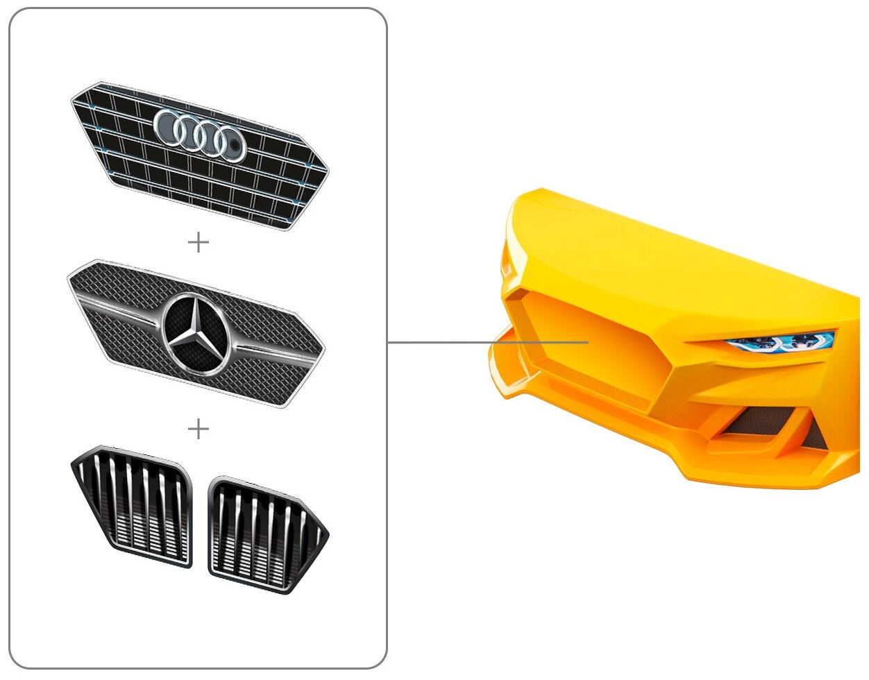 Купить Кровать детская Romack Dynamic-M желтая 80х200 с подсветкой фар, подъемным механизмом, ящиком для белья, матрасом