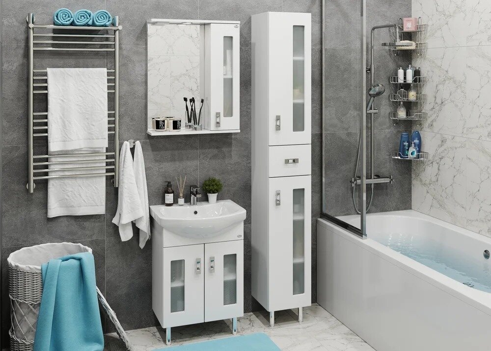 СохранитьТумба для ванной комнаты Onika Кристалл 55 напольная, белая (под раковину Балтика 55) интересное: