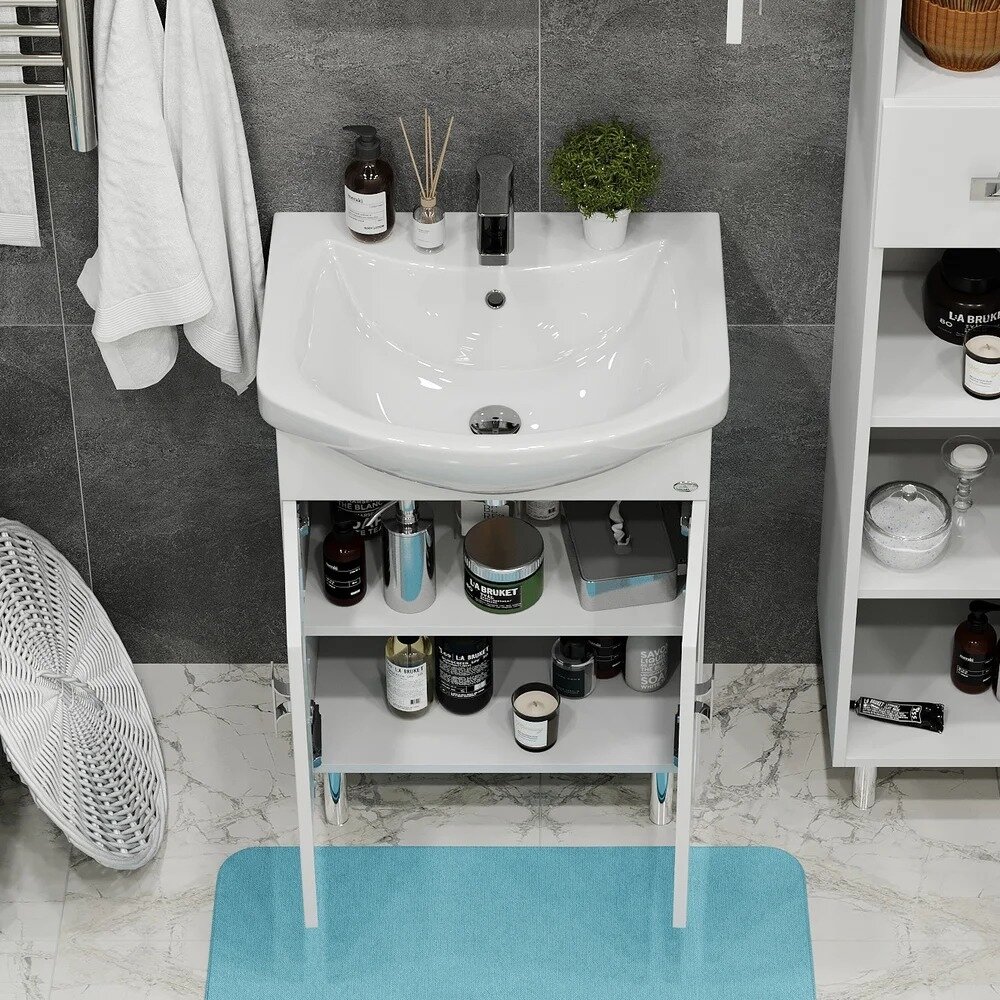 Тумба с раковиной для ванной Кристалл 50 белая.