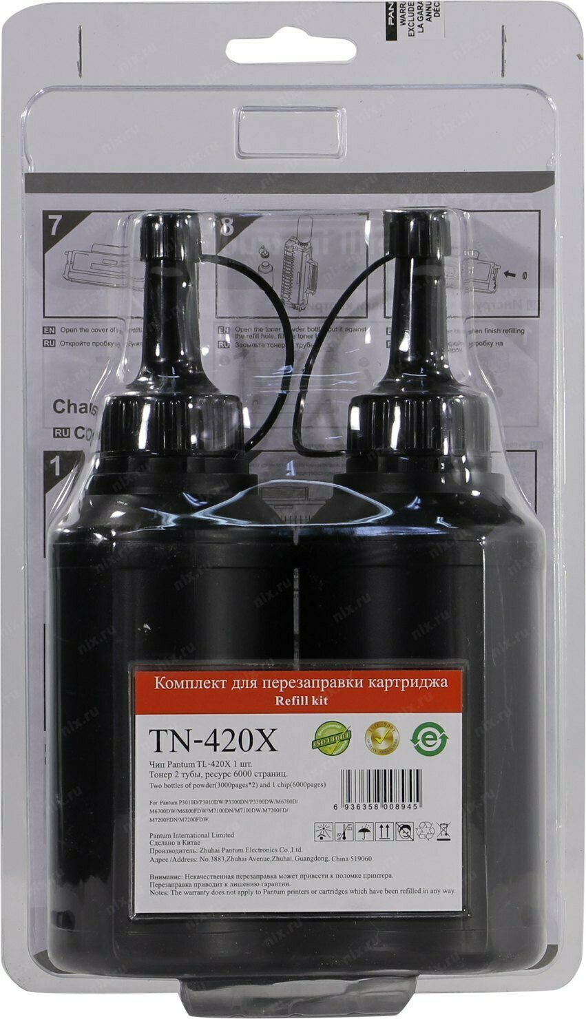 Заправочный комплект PANTUM (TN-420X) P3300/M6700/M6800/M7100, ресурс 6000 стр, 2 тонера + 2 чипа, оригинальны