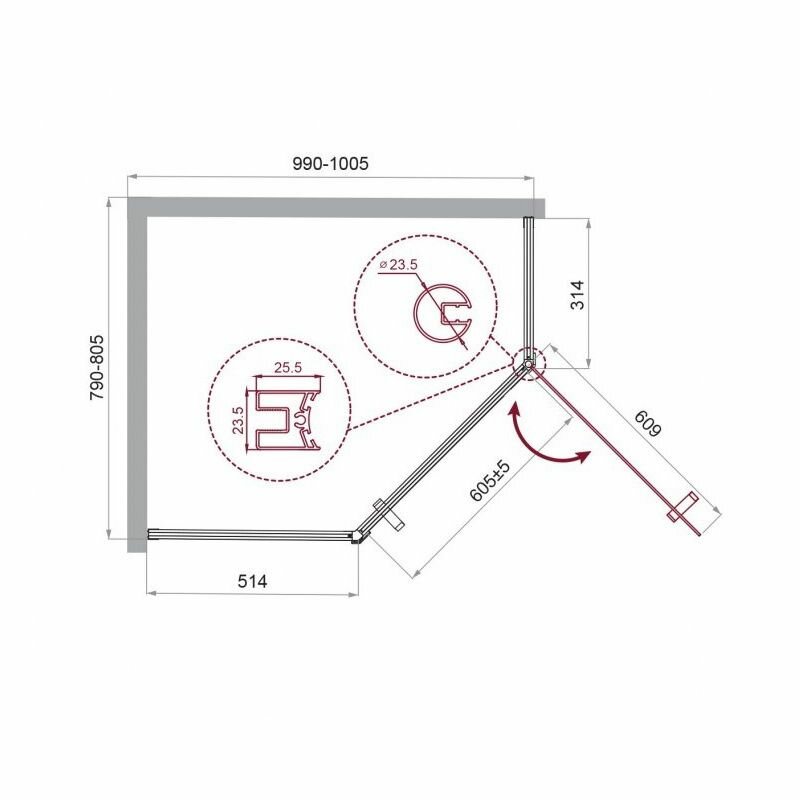 UNO-195-PH-1-100/80-C-Cr Душевой уголок