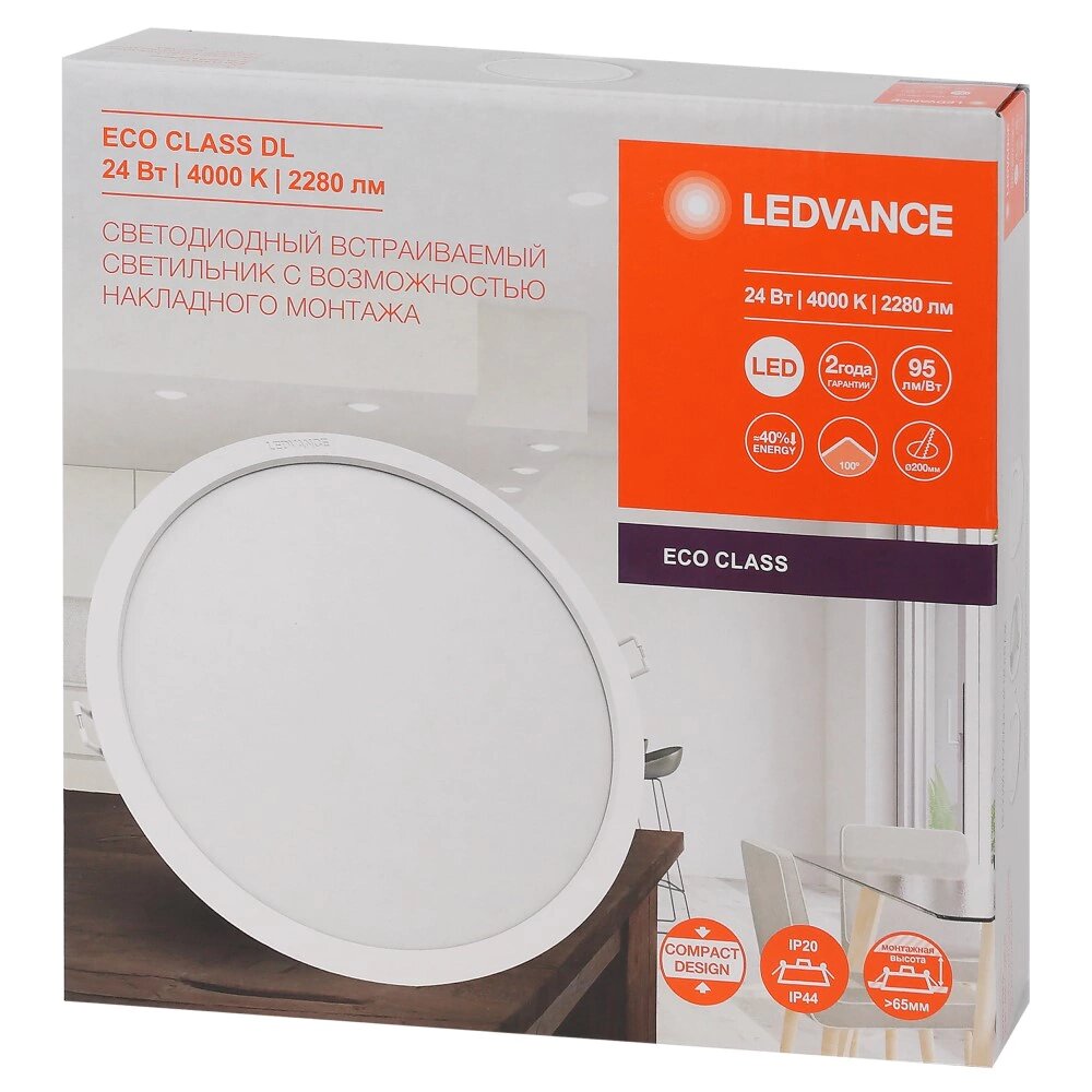 Светильник точечный Ledvance Экокласс 24 Вт LED 4000 К IP44
