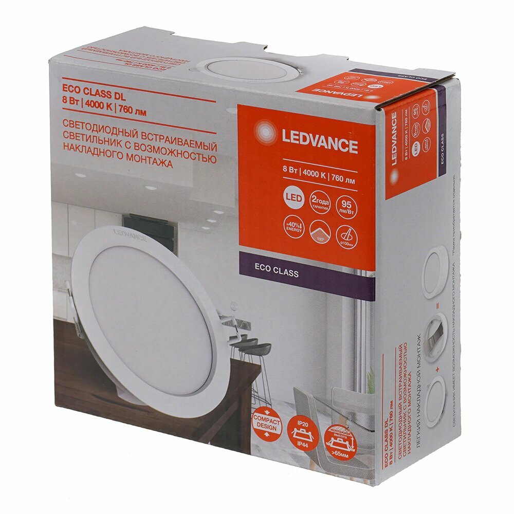 LEDVANCE Светильник светодиодный даунлайт ECOCLASS DL8W 840 WTIP44 10x1RETRU LEDV 4058075656611