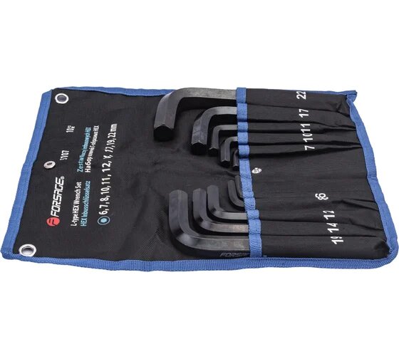 FORSAGE F-5107 Набор ключей L-образных 6-гранных, 10 пр: 6, 7, 8, 10, 11, 12, 14, 17, 19, 22 мм, на полотне