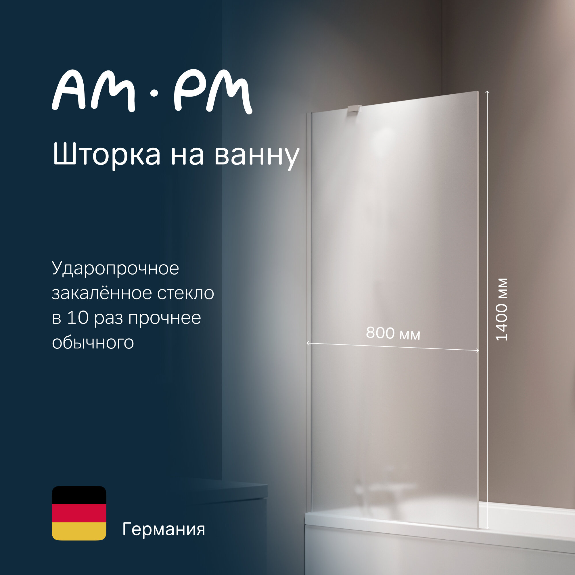 Шторка для ванной AM.PM Gem W90BS-080-140CM 80х140 фиксированная, стекло матовое, профиль хром