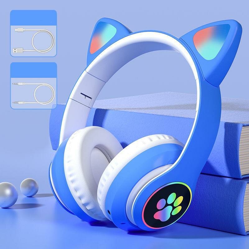 Наушники беспроводные Bluetooth с кошачьими ушами STN-28 JBH, синие интересное: