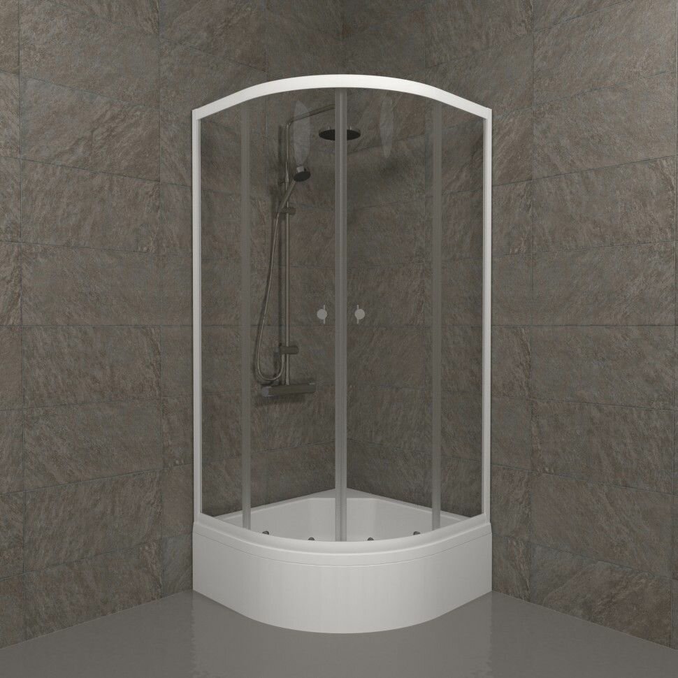Купить Душевой уголок Triton Тритон Ультра 90x90 В, средний поддон, четверть круга, цвет профиля белый
