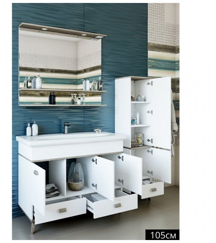 Тумба с раковиной Sanflor Бруно 105 белая/орегон интересное: