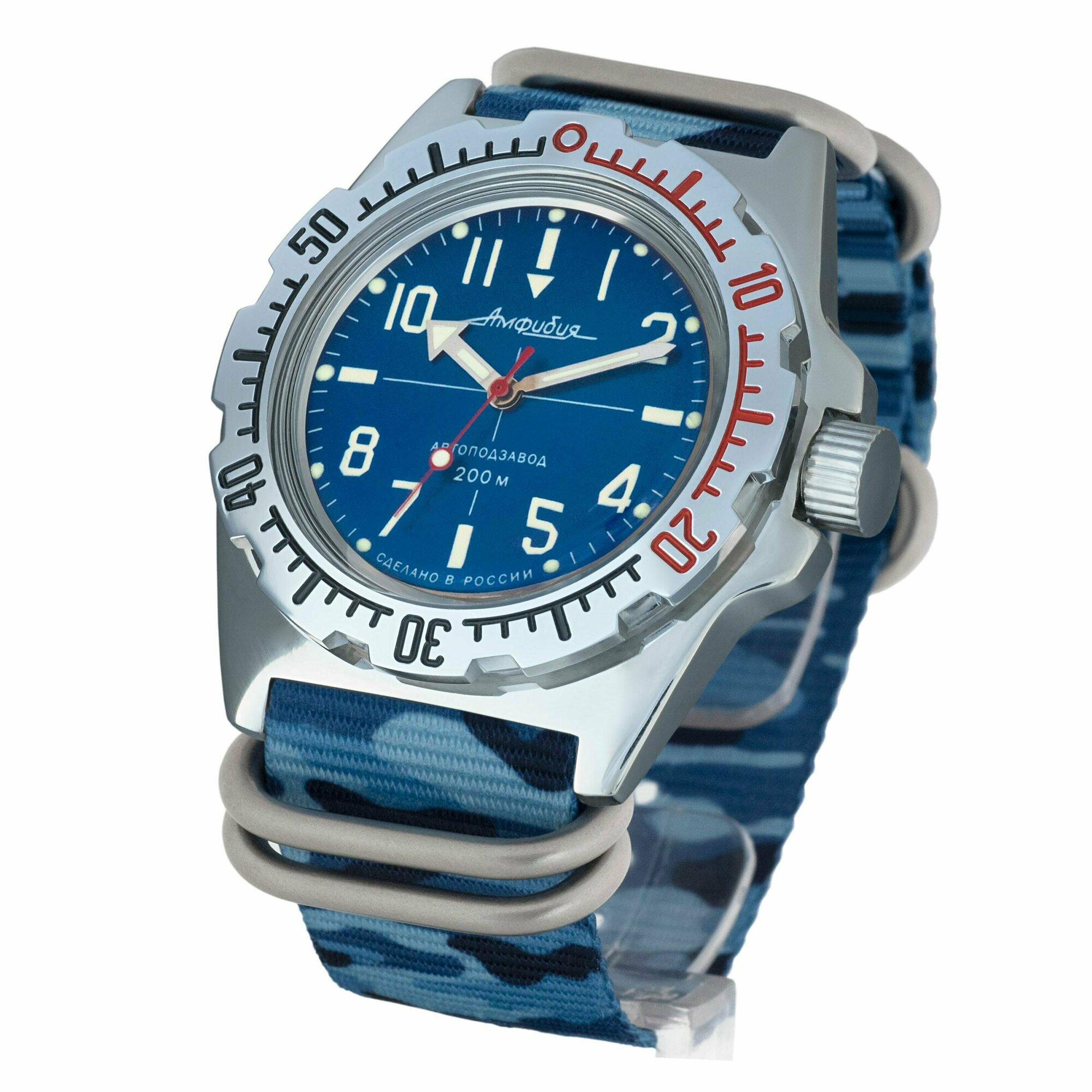 Часы наручные мужские механические с автоподзаводом Восток Амфибия 110648_redplanet, нейлон, камо красная планета