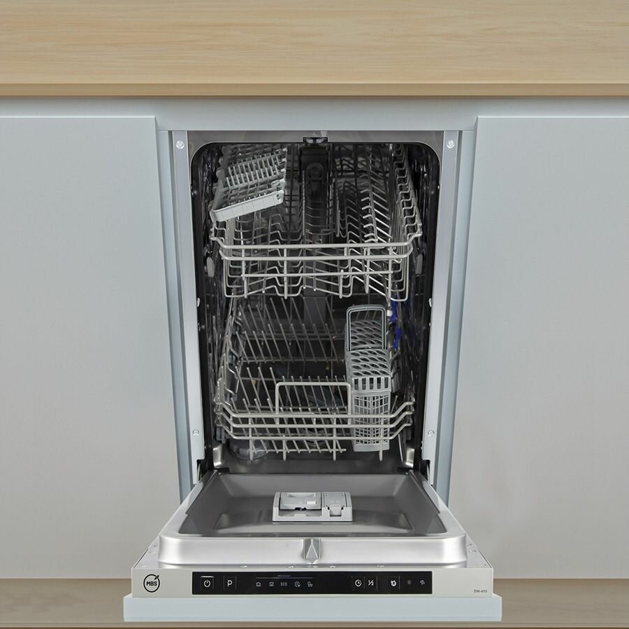 Встраиваемая посудомоечная машина MBS DW-455, узкая, ширина 44.8см, полновстраиваемая, загрузка 9 комплектов