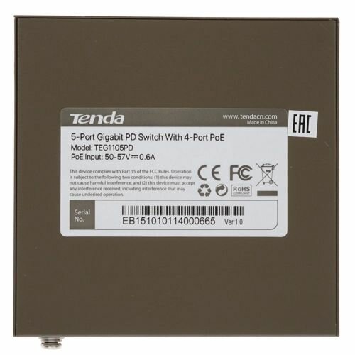 Коммутатор Tenda Teg1105pd 5-Port Gigabit PD Switch, 4-Port PoE . интересное: