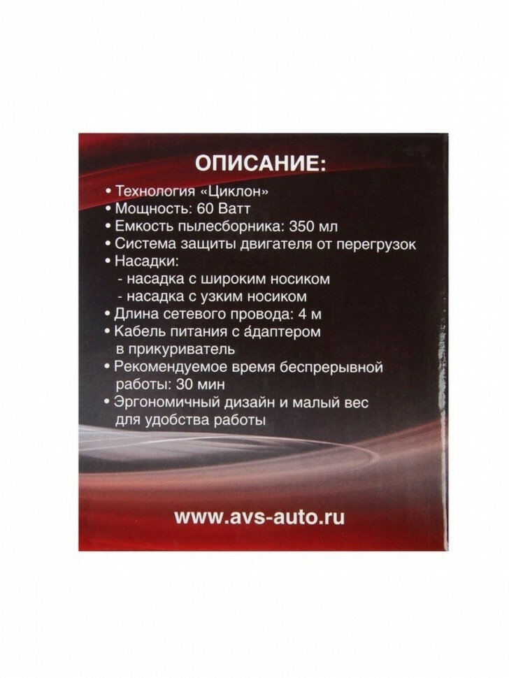 Пылесос Автомобильный! 60 Вт, 0.35Л, Кабель 4М, 2 Насадки AVS арт. A80859S интересное:
