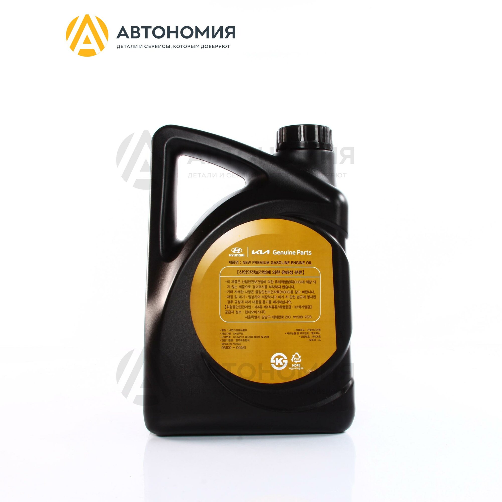 Масло моторное синтетическое GASOLINE ENGINE OIL NEW PREMIUM API SN, ACEA C2, 0W-20, 4л Hyundai/KIA 05100-00461