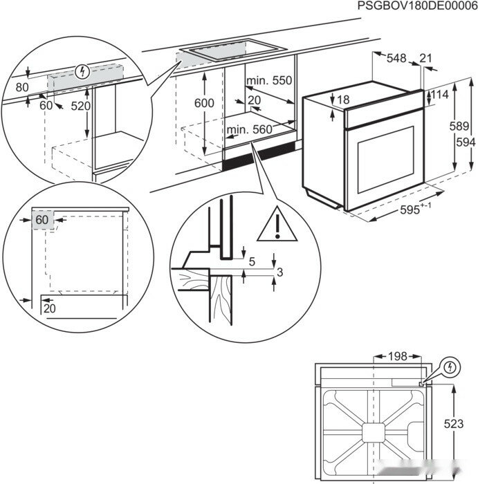| Дополнительная информация | ширина и высота шкафа для встраивания: 60 см; мощность нижнего нагревателя: 1000 Вт; мощность верхнего нагревателя: 800 Вт; мощность нагревателя гриля: 1300 Вт; температурный диапазон: 50 - 250 °C; длина кабеля: 1,1 м |