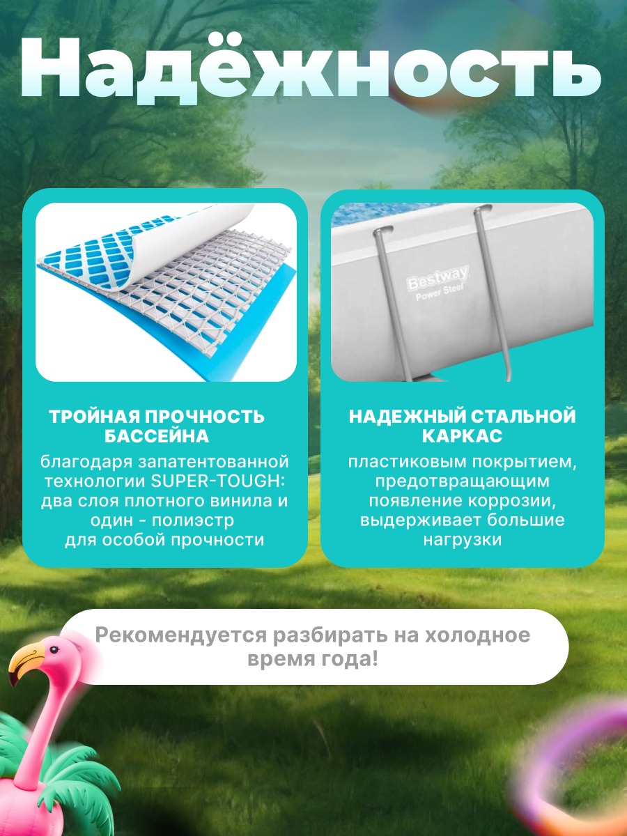 СохранитьБассейн каркасный Bestway Frame Pool Set, 282×196×84 см, фильтр-насос, 56629 интересное: