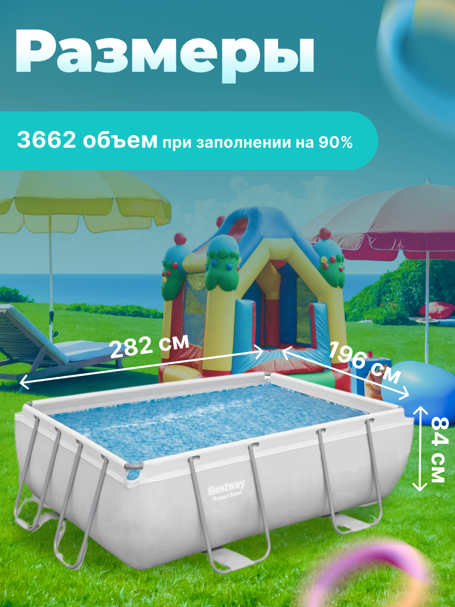 56629 Каркасный бассейн Power Steel 282х196х84см, 3662л, фил.-насос 1249л/ч