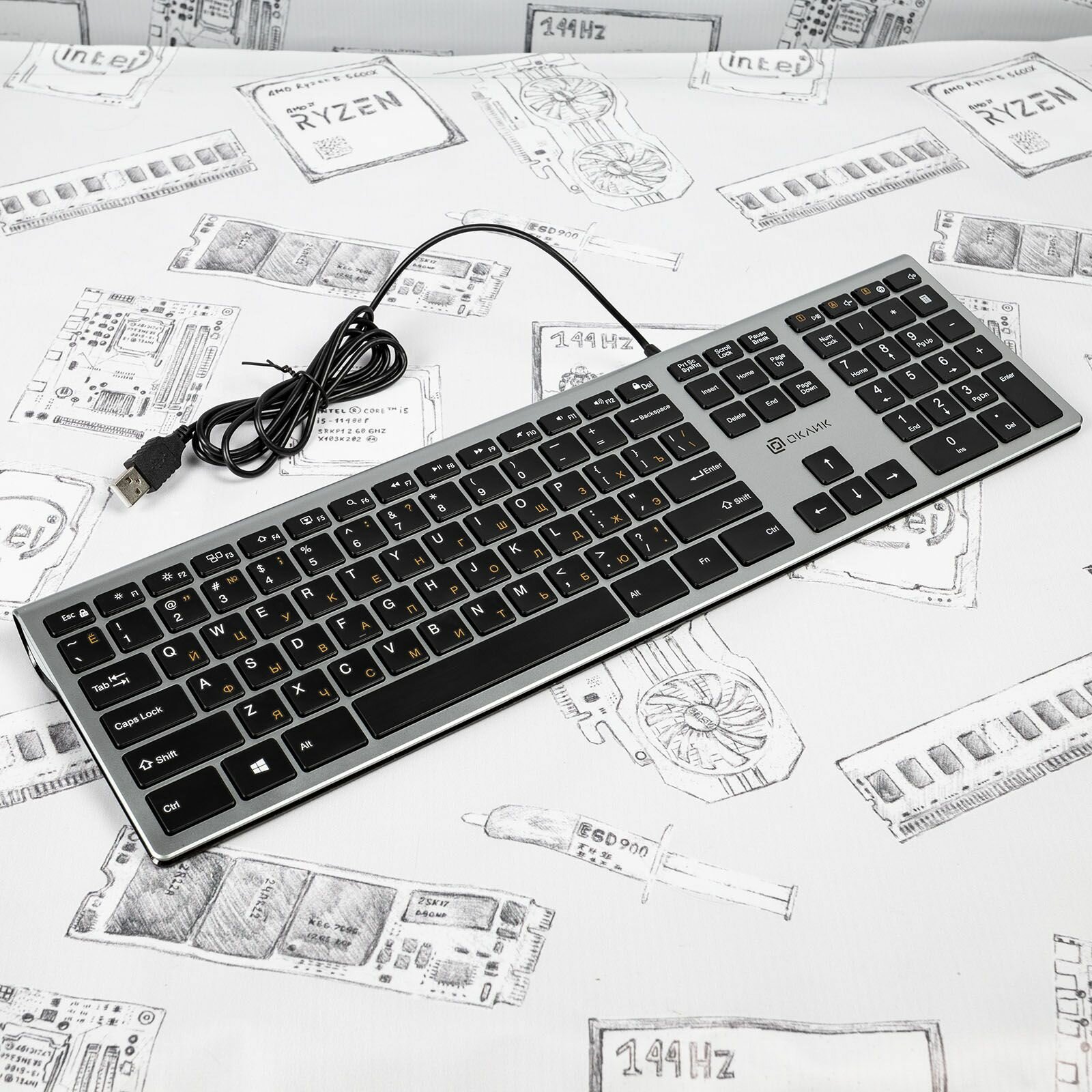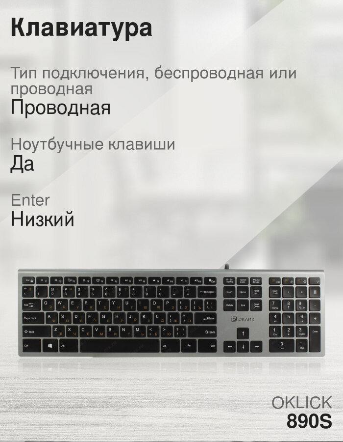 Клавиатура Oklick 890S, ножничная, проводная, USB, серый/черный (1784239)